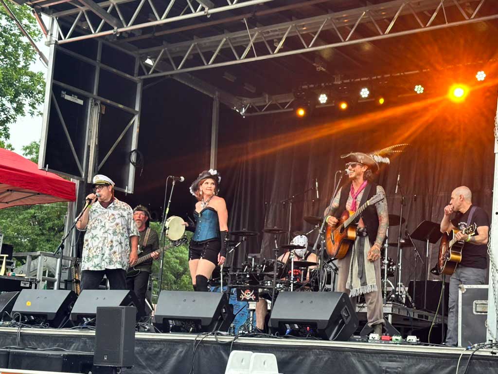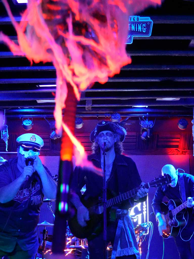 Bring back the days when live music was an experience that left you woozy, euphoric, and energized! With the souls of pirates and a wide musical range, Plunder & Lightning bridges a gap between dead-serious, driving rock and musical theatre dripping with seaweed. They deliver hooks that call upon the eldergods of indie, punk, and classic sea shanty, often seasoned by 50s rock, reggae, or whisky while romanticizing pirate life through rich storytelling and anthematic irreverence. No genre is sacred or off limits — corporate anarchy, cannibalism, accidental castration, or celebrity defecation. A 6-piece ensemble with electric/acoustic sets, Plunder & Lightning can light up any stage, festival, venue, bar or boat, from “PG-13” to “ARR!”.